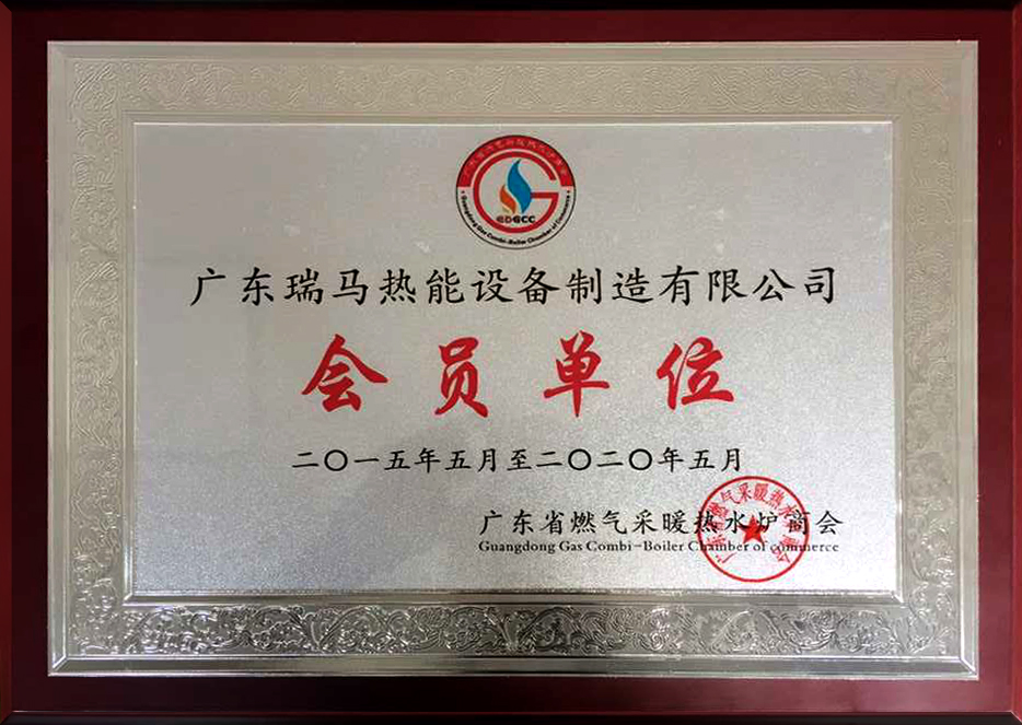 瑞馬燃氣壁掛爐-燃氣采暖熱水爐商會會員證