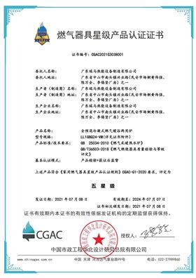 燃氣器具星級產品認證證書